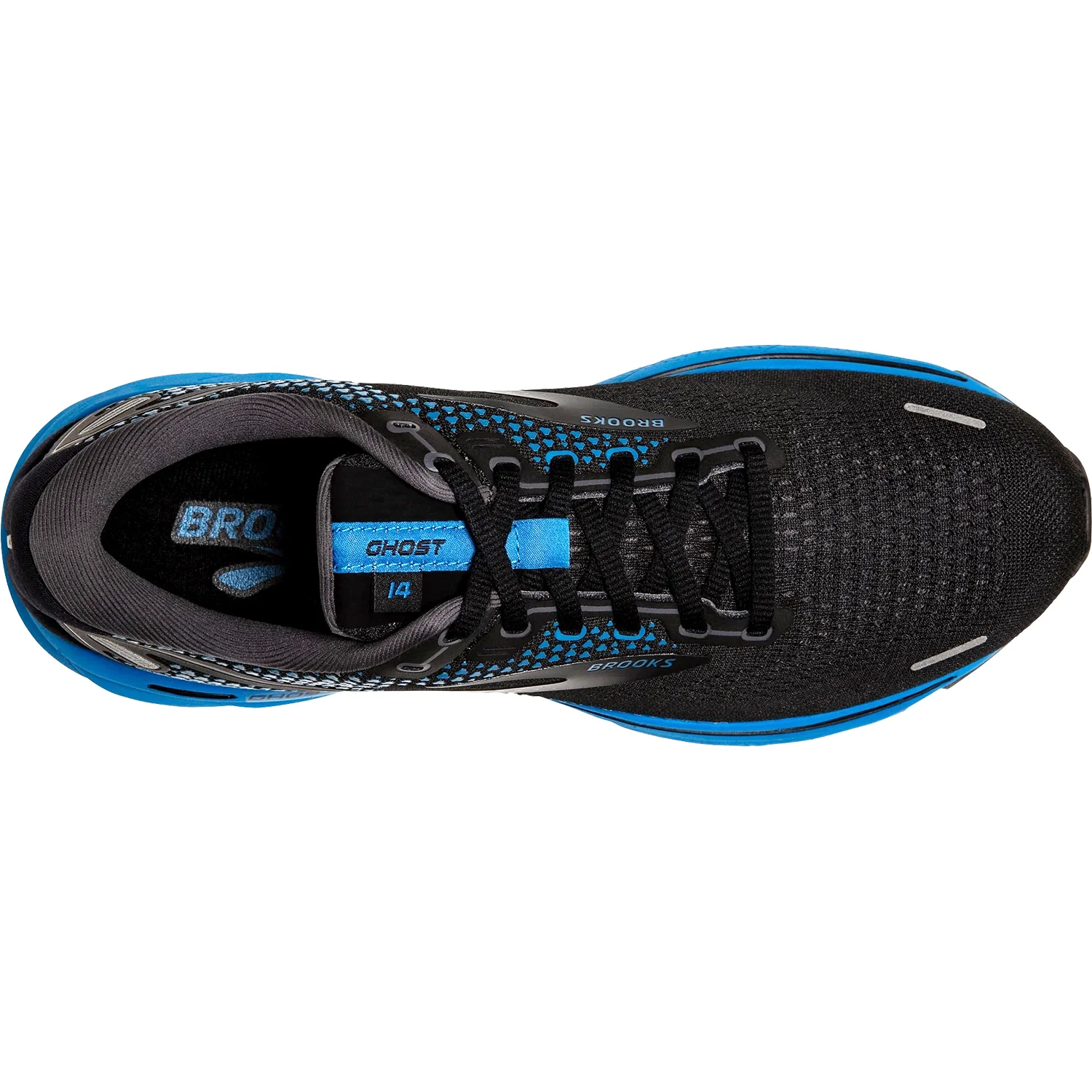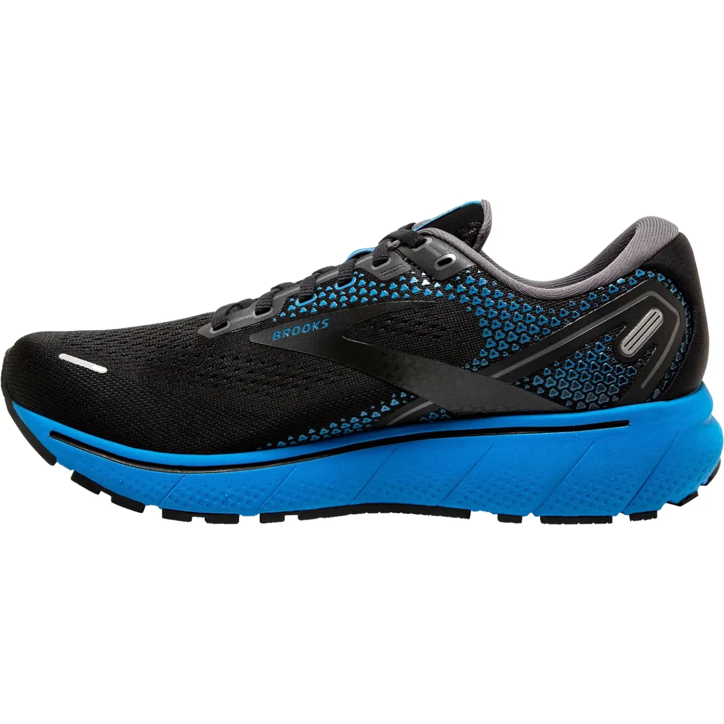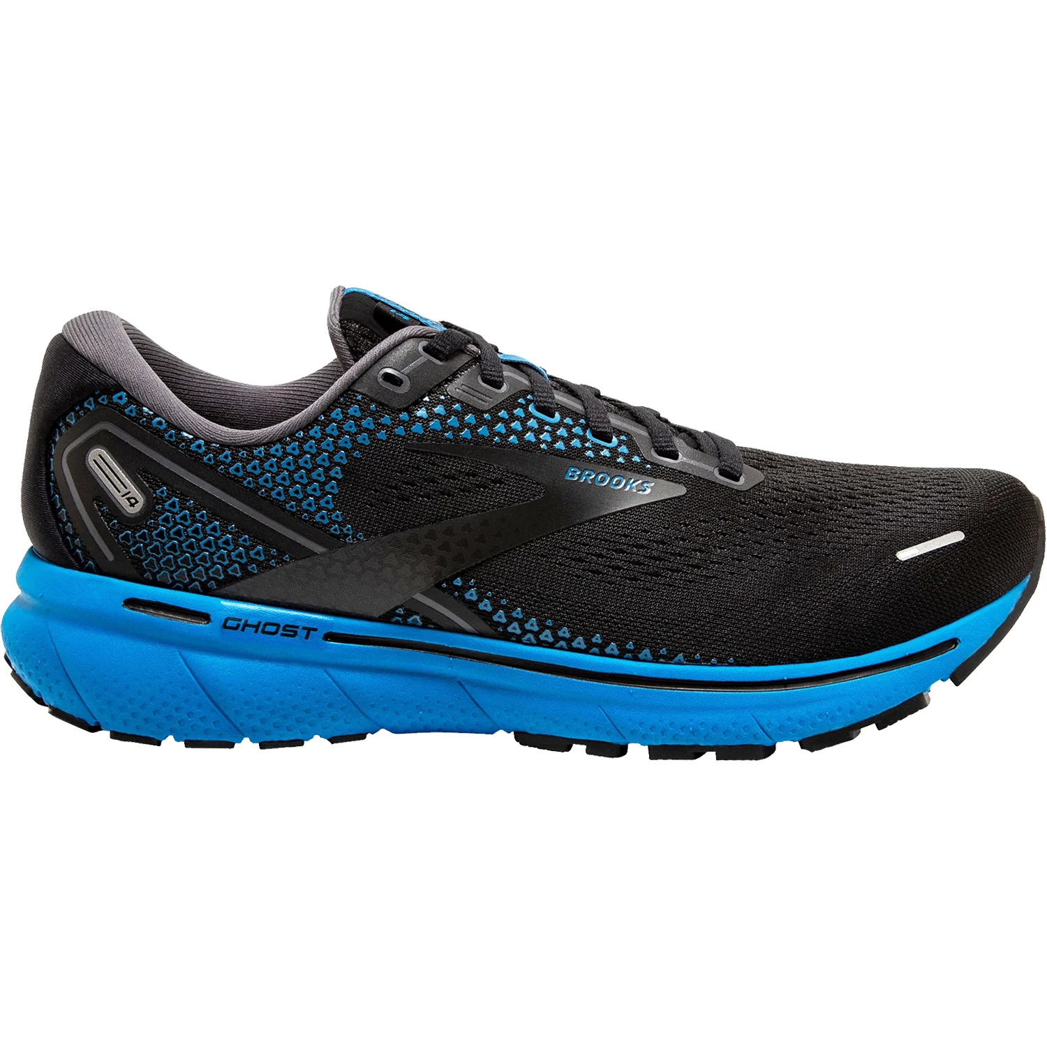 These Brooks Ghost 14 Black/Blackened Pearl/Blue Mesh Men's Shoes have the following features: