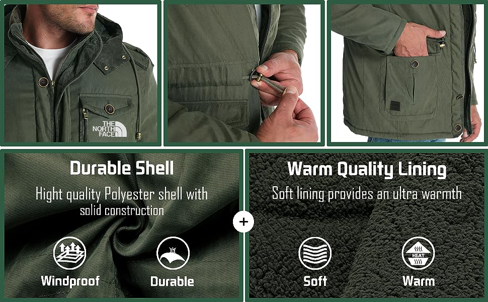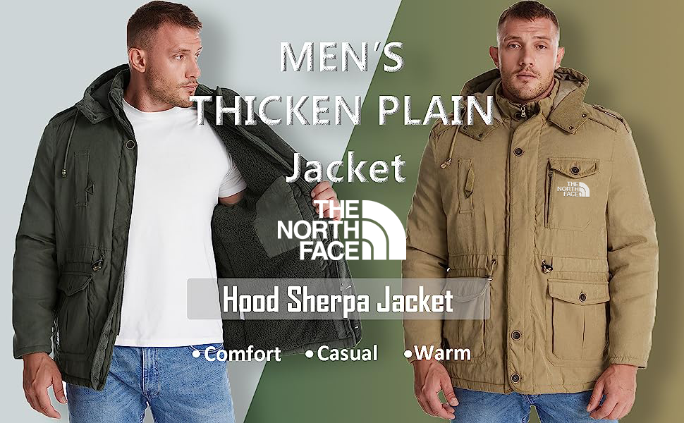 Men's Winter Hooded Jacket Windproof Lined Fleece Windbreaker Coat Outerwear Warm Parka S-XXL