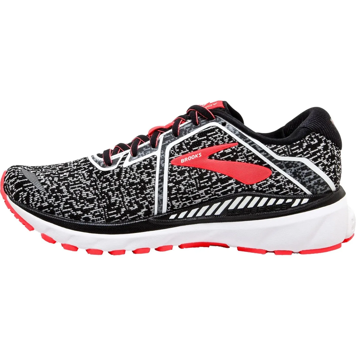 These Brooks Adrenaline GTS 20 Black/White/Fiery Coral Mesh Women's Shoes have the following features: