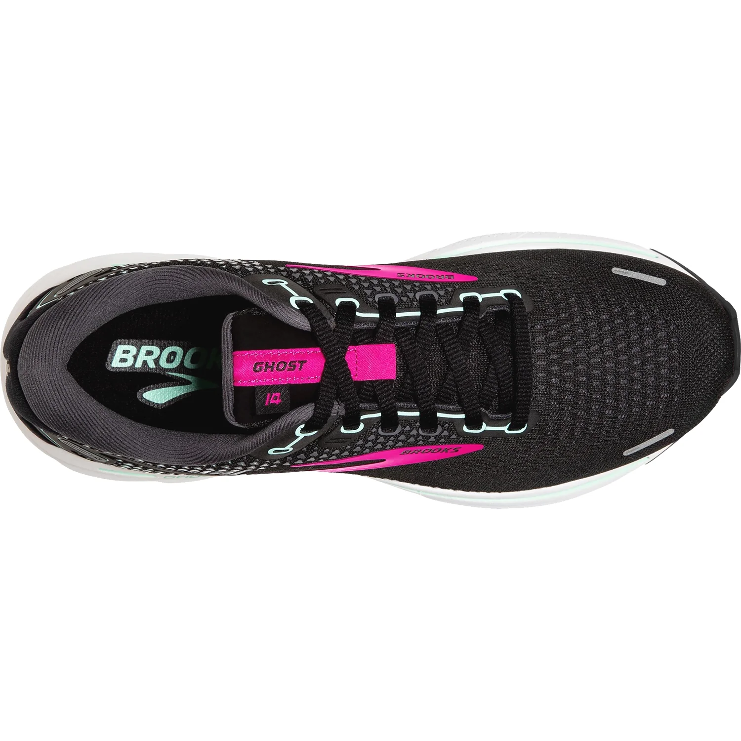 These Brooks Ghost 14 Black/Pink/Yucca Women's Shoes have the following features: