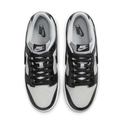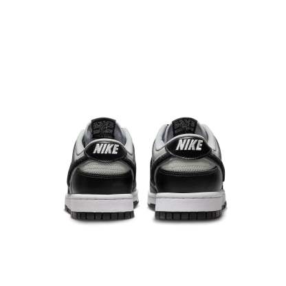 Introducing the nike Dunk Low Grey Fog Black. This sleek combination of heritage hoops and modern varsity style is a must-have for every sneakerhead. The perfect blend of white midsole, black rubber outsole, grey leather base and black overlays give this shoe a truly timeless look, while the iconic nike Swoosh in plush black chenille ensures it will make a statement on any court. Making sure you stay up-to-date with fashion trends, the 'nike' logo can be found on both the heel tab and tongue tag. Add a touch of finesse to your outfit and grab a pair of these classic basketball shoes today.