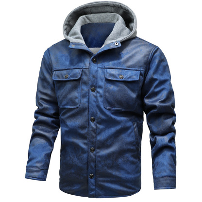 Men's Pocket Hooded Faux Leather Jacket