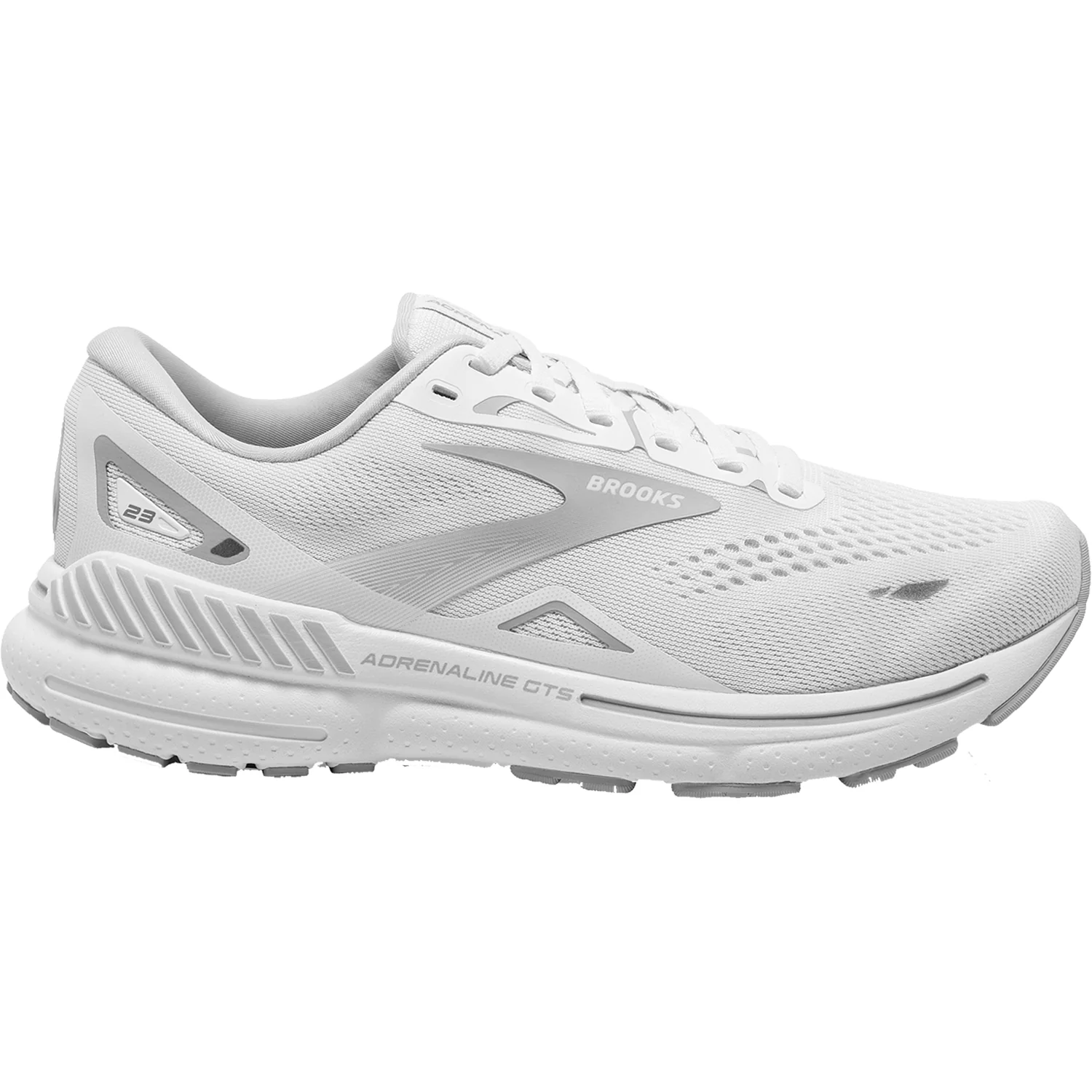 These Brooks Adrenaline GTS 23 White/Oyster/Silver Mesh Women's Shoes have the following features: