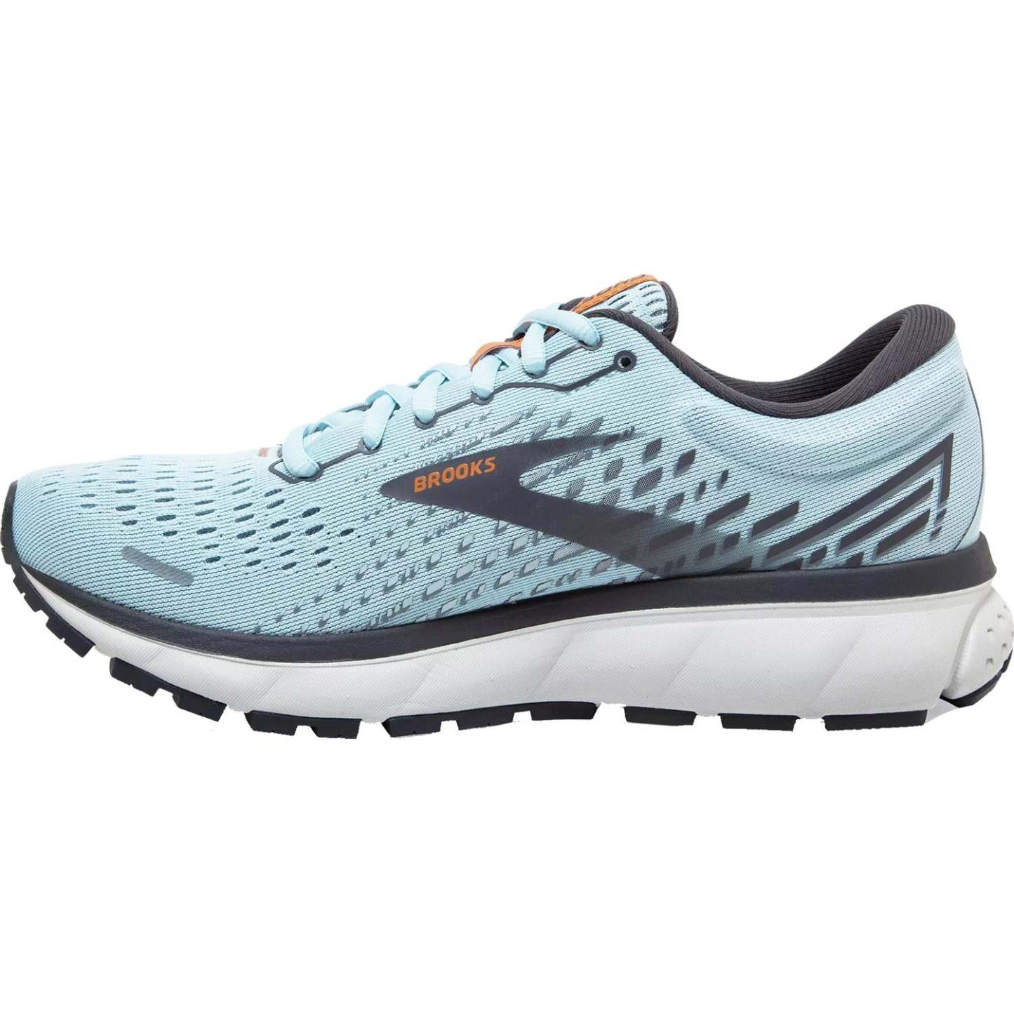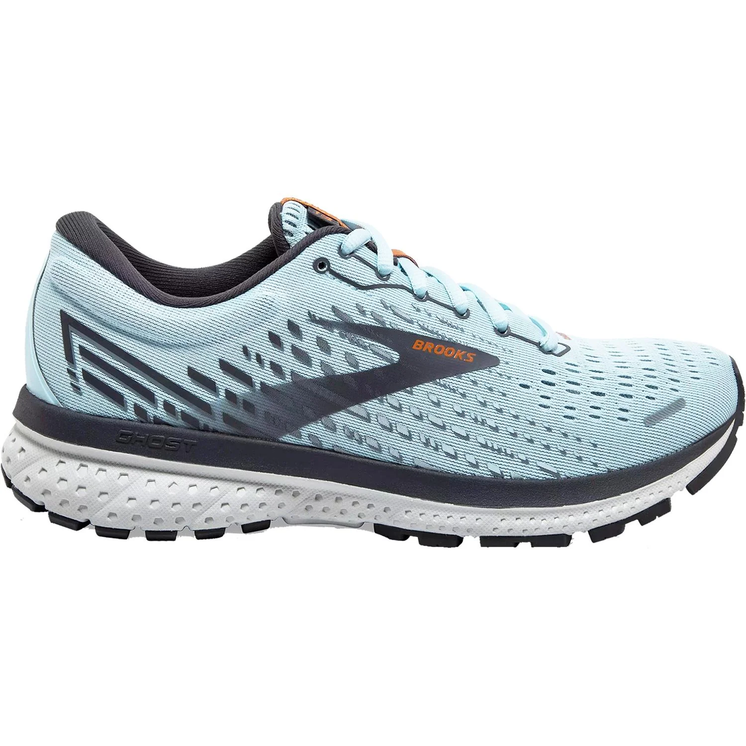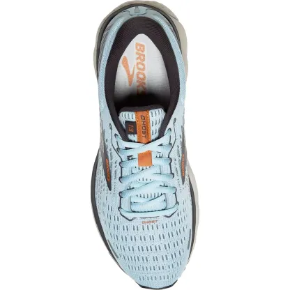 These Brooks Ghost 13 Light Blue/Blackened Peral/White Mesh Women's Shoes have the following features: