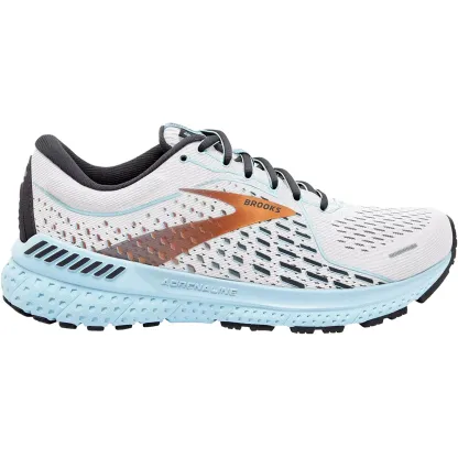 These Brooks Adrenaline GTS 21 White/Alloy/Light Blue Mesh Women's Shoes have the following features: