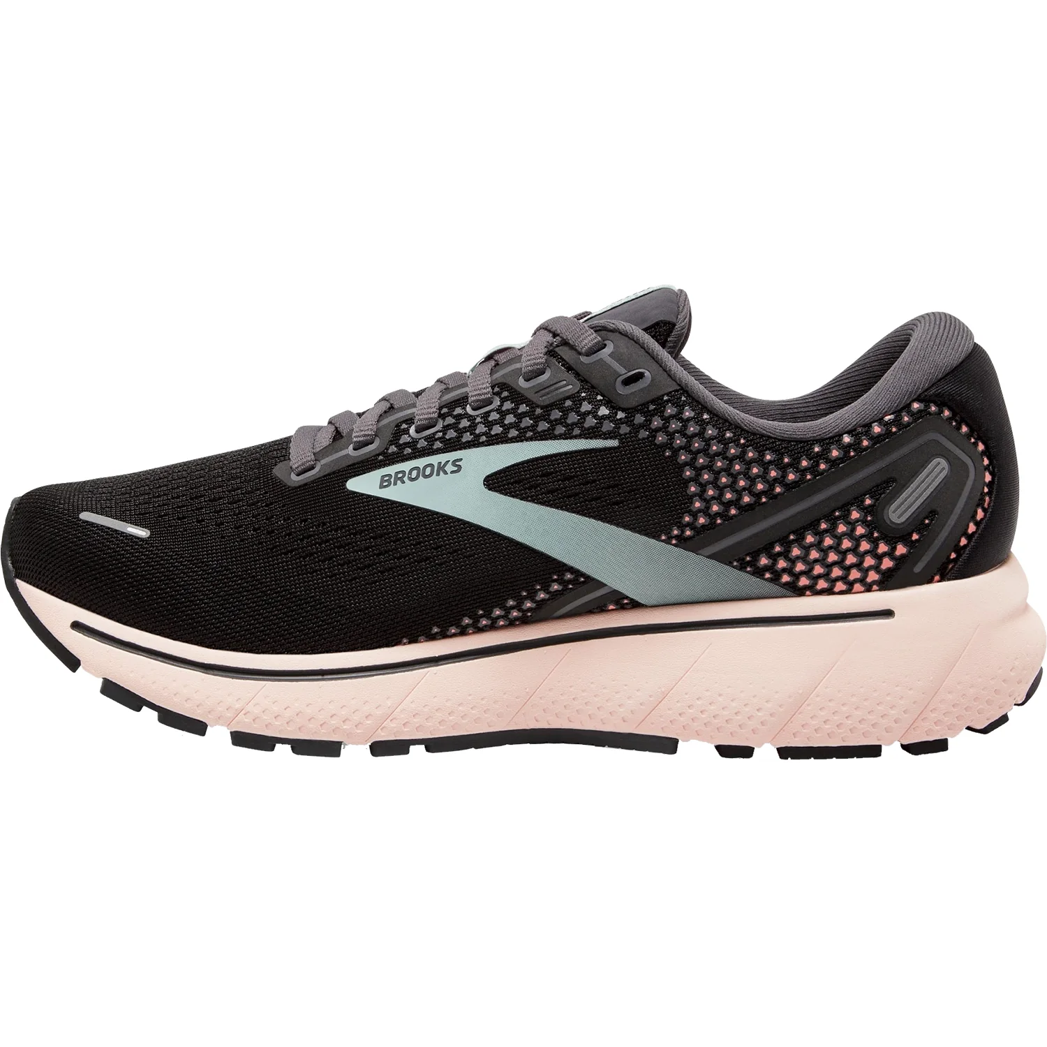 These Brooks Ghost 14 Black/Pearl/Pink Mesh Women's Shoes have the following features: